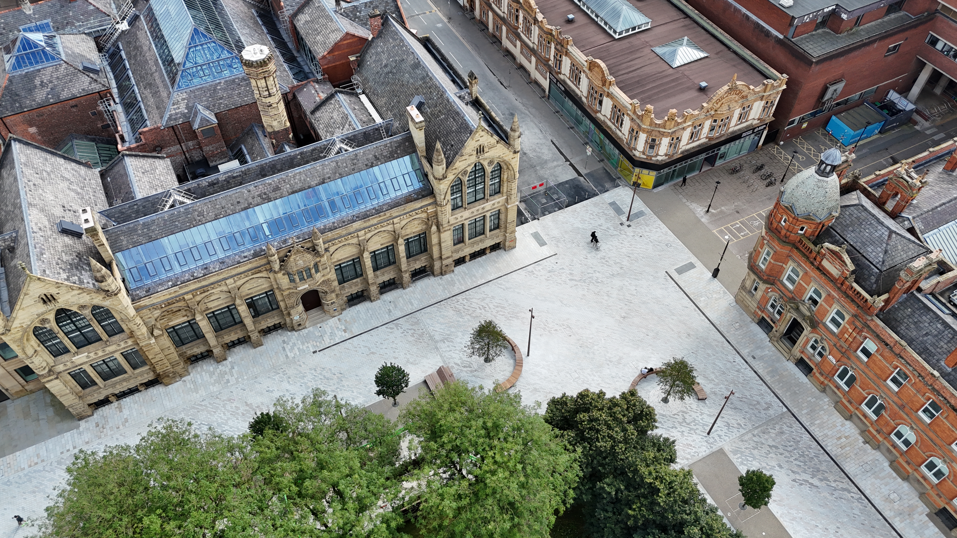 Sustainable drainage systems with attenuation and hydro brick manholes into the main United Utilities system were laid and backfilled to formation level and tree cell structures were installed to Lower Ormond Street. Granite kerbs were then laid to de-mark the walkways, allowing the concrete sub-bases to be installed. On Cavendish Road, two attenuation tanks were installed.